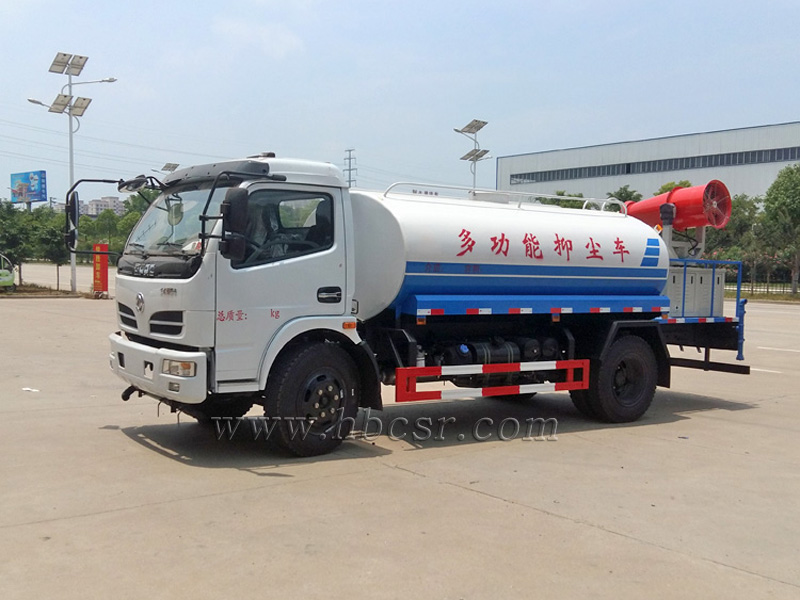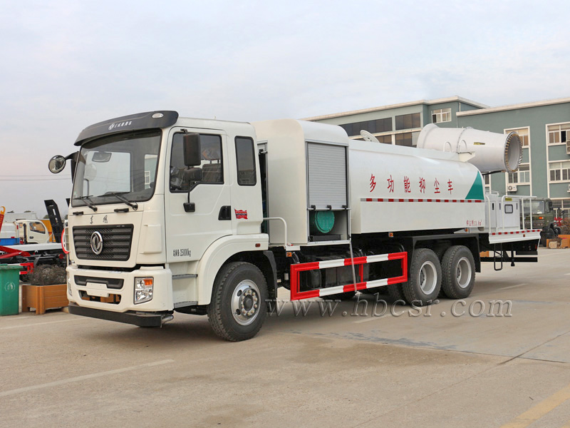 多功能抑塵車(chē),又稱(chēng):噴霧抑塵車(chē)、霧炮車(chē)、射霧車(chē),主要是在灑水車(chē)的基礎(chǔ)上,增加了風(fēng)送式遠(yuǎn)程噴霧抑塵系統(tǒng),射霧距離可達(dá)30-120米不等。適用于攪拌站、水泥廠(chǎng)、拆遷工地、城市道路、砂石料場(chǎng)環(huán)保除塵、水霧降塵、揚(yáng)塵治理的專(zhuān)用設(shè)備。
