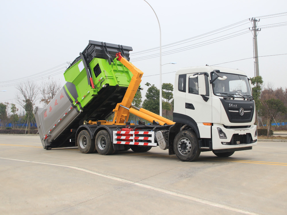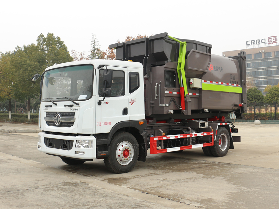 勾臂垃圾車(chē),又稱(chēng)為:車(chē)廂可卸式垃圾車(chē),環(huán)衛(wèi)勾臂車(chē),拉臂車(chē),主要適用于市政環(huán)衛(wèi)、物業(yè)管理、大型廠(chǎng)、工礦等各種場(chǎng)所收集、運(yùn)載各種生活垃圾。勾臂垃圾車(chē)采用全液壓控制操作系統(tǒng),垃圾廂與底盤(pán)可徹底分離,具有結(jié)構(gòu)合理,操作簡(jiǎn)便、穩(wěn)定、使用效率高、密封性能好、傾倒方便等優(yōu)點(diǎn),能實(shí)現(xiàn)一臺(tái)車(chē)與多個(gè)垃圾廂聯(lián)合作業(yè),循環(huán)運(yùn)輸,充分提高車(chē)輛的運(yùn)輸能力。