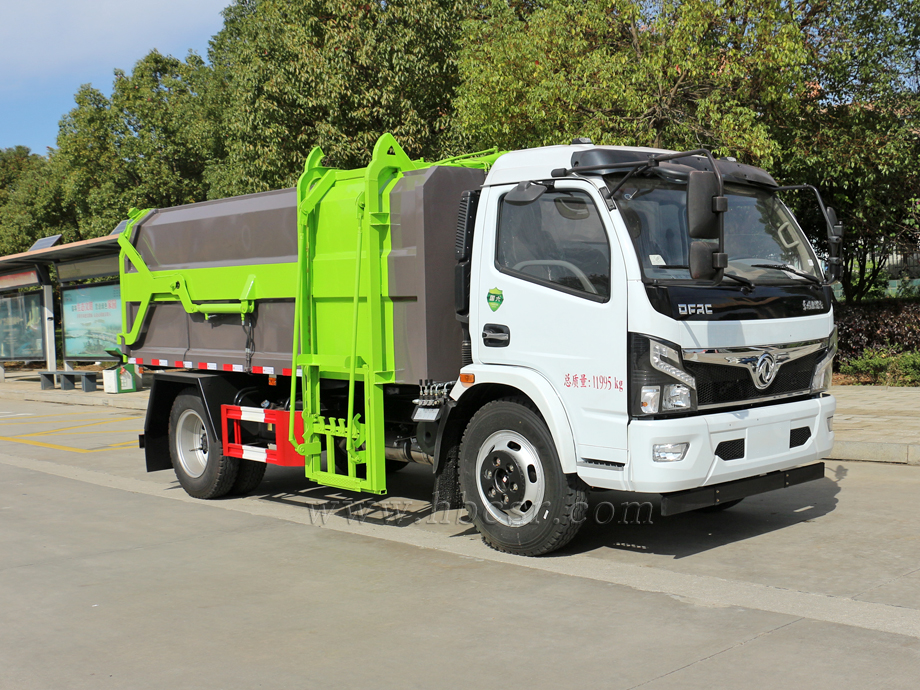 掛桶垃圾車(chē),又稱(chēng):自裝卸式垃圾車(chē),主要用于各市政環(huán)衛(wèi)及大型廠(chǎng)礦部門(mén)運(yùn)載各種生活垃圾。整車(chē)由密封式垃圾廂、液壓系統(tǒng)、操作系統(tǒng)組成。舉升油制缸(2支)垃圾廂可自吊上放下,上下一次工作循環(huán)時(shí)間≤50S。掛桶垃圾車(chē)的特點(diǎn)是一個(gè)車(chē)能配幾十個(gè)垃圾桶,能實(shí)現(xiàn)一臺(tái)車(chē)與多個(gè)垃圾桶聯(lián)合作業(yè),循環(huán)運(yùn)輸,充分提高了車(chē)輛的運(yùn)輸能力。