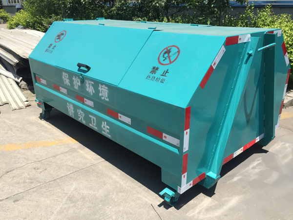 勾臂式垃圾箱又稱車廂可卸式垃圾箱、可移動式垃圾箱、拉臂車?yán)?、生活垃圾收集轉(zhuǎn)運(yùn)箱,與勾臂車(車廂可卸式垃圾車)配套使用,是目前國內(nèi)市場上垃圾收集轉(zhuǎn)運(yùn)的主要盛裝轉(zhuǎn)運(yùn)工具,應(yīng)用廣泛,循環(huán)使用方便,一車配套多個轉(zhuǎn)運(yùn)箱使用,效率高,造價低等優(yōu)勢受到廣大環(huán)衛(wèi)事業(yè)工作人員的大力推薦及使用。主要運(yùn)輸介質(zhì)為:生活垃圾,密度約為0.6噸/立方米,主要利用底盤自帶發(fā)動機(jī)為動力,通過變速箱上安裝取力器帶動油泵驅(qū)動液壓油缸實(shí)現(xiàn)機(jī)械臂運(yùn)作的勾臂車對垃圾箱的上鉤、下卸、自卸等功能。