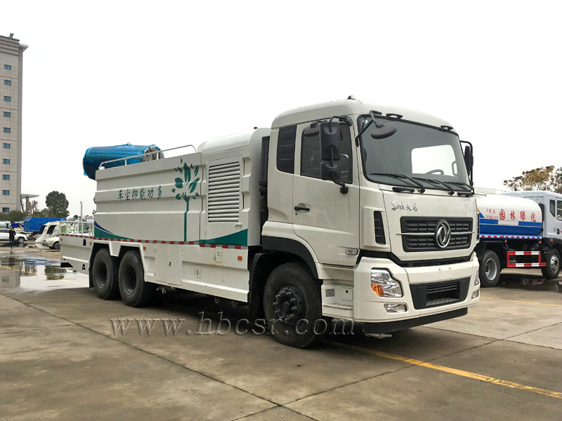 后噴灑:裝有兩只可噴淋后灑裝置,主要對路面進行保潔和壓塵,呈扇形噴灑時灑水寬度可達10m以上。