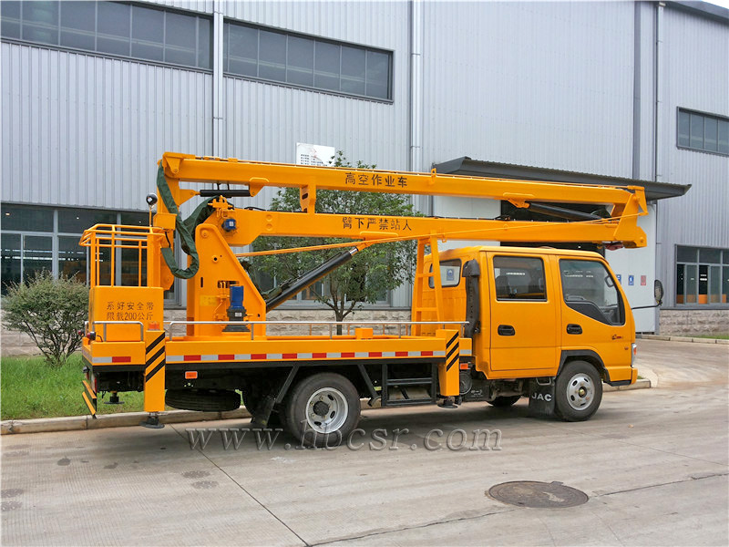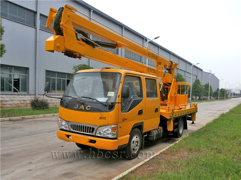 高空作業(yè)車包括折疊臂式高空作業(yè)車(又叫曲臂式高空作業(yè)車)、伸縮臂式高空作業(yè)車(又叫直臂式高空作業(yè)車)和液壓升降平臺型高空作業(yè)車(又叫車載剪叉式高空作業(yè)平臺),作業(yè)高度8-30米均有供應(yīng),底盤可選東風系列、福田系列、五十鈴、江淮、江鈴以及新研發(fā)的重汽和解放系列。高空作業(yè)車廣泛適用于市政、電力、路燈、廣告、通訊、園林、交通、工礦、碼頭等多種系統(tǒng)的高空作業(yè)。