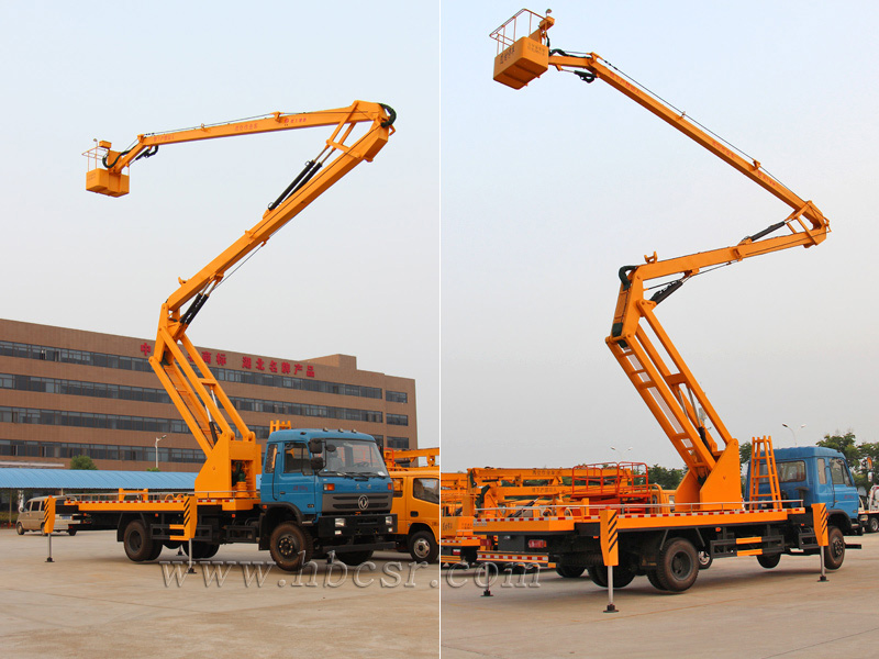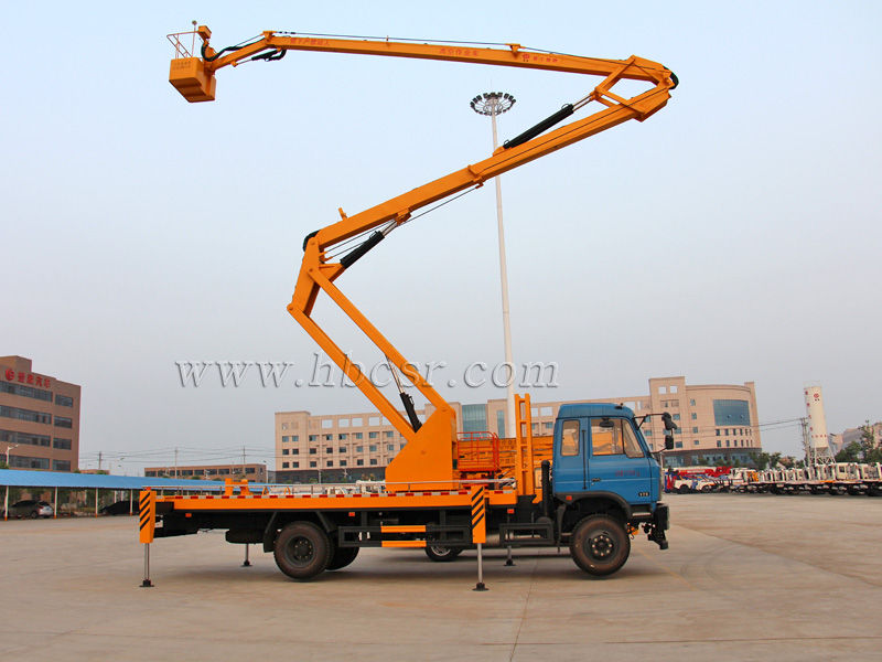 高空作業(yè)車包括折疊臂式高空作業(yè)車(又叫曲臂式高空作業(yè)車)、伸縮臂式高空作業(yè)車(又叫直臂式高空作業(yè)車)和液壓升降平臺型高空作業(yè)車(又叫車載剪叉式高空作業(yè)平臺),作業(yè)高度8-30米均有供應(yīng),底盤可選東風(fēng)系列、福田系列、五十鈴、江淮、江鈴以及新研發(fā)的重汽和解放系列。高空作業(yè)車廣泛適用于市政、電力、路燈、廣告、通訊、園林、交通、工礦、碼頭等多種系統(tǒng)的高空作業(yè)。