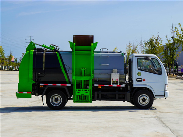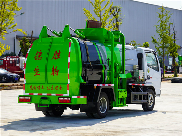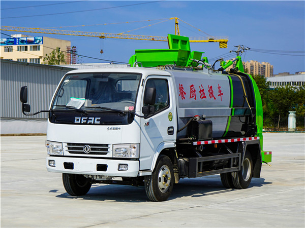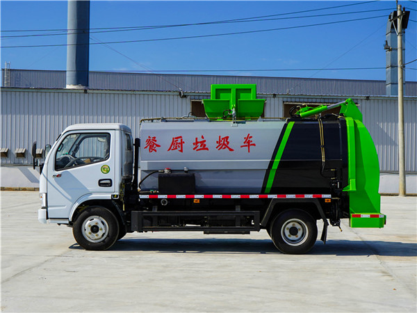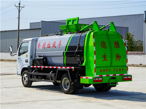 東風(fēng)小多利卡餐廚垃圾車采用東風(fēng)原裝底盤,東風(fēng)D6系列駕駛室,3308mm軸距,5檔變速箱,7.00R16鋼絲胎,3.5噸后橋,氣剎制動(dòng),動(dòng)力轉(zhuǎn)向,ABS,空調(diào)。  上裝配置:罐體容積4~5m3,罐體厚度4.5mm,配備120L/240L掛桶提升翻轉(zhuǎn)機(jī)構(gòu),液壓系統(tǒng),后蓋液壓鎖緊開啟,罐體可以舉升自卸,尾部帶自流閥;用于運(yùn)輸液態(tài)垃圾,其特點(diǎn)操作簡(jiǎn)單,密封性好,無泄漏,無異味;可選裝固液分離功能,推板擠壓功能,常用于餐館的垃圾轉(zhuǎn)運(yùn)處理 。