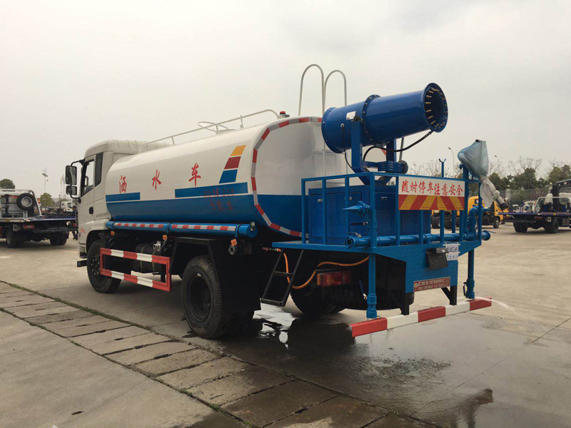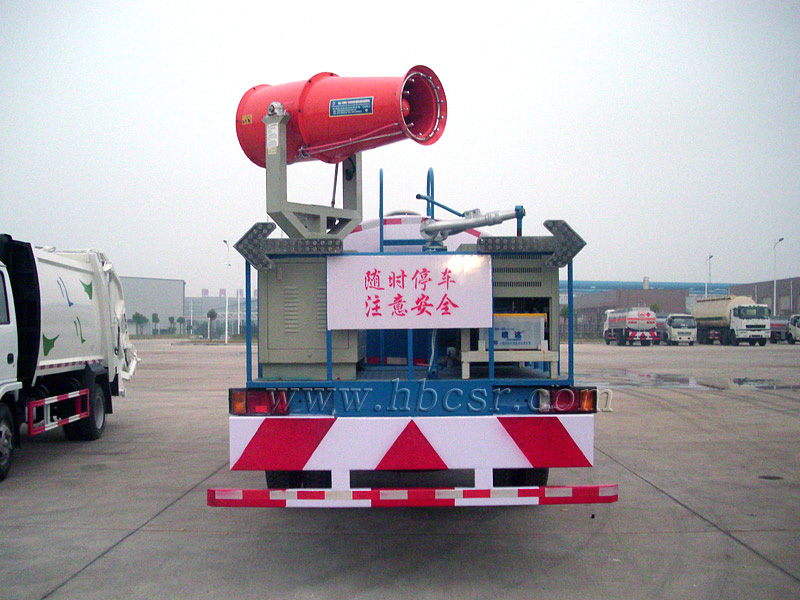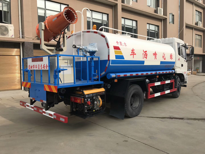 罐體實(shí)際容積為:10-12(標(biāo)準(zhǔn))立方米,整車帶前沖、后灑、側(cè)噴噴頭、遠(yuǎn)程高壓水炮。平時(shí)可用于道路灑水、綠化澆水、噴灑農(nóng)藥、噴霧降塵,關(guān)鍵時(shí)刻高壓水炮還可用于應(yīng)急消防。罐體內(nèi)部可按用戶要求加做特殊耐酸、耐堿防腐處理,管道**低點(diǎn)設(shè)置防凍裝置,噴霧機(jī)組可手動(dòng)操作或遠(yuǎn)程遙控操作。噴藥?kù)F炮可上下、及左右360度旋轉(zhuǎn)噴藥,一個(gè)即可操作全車。罐體前端倉(cāng)內(nèi)放置噴霧機(jī)配套的汽/柴油發(fā)電機(jī),罐體兩側(cè)壁上均開有大量排氣孔,方便散熱,罐體后部工作平臺(tái)上放置風(fēng)送式遠(yuǎn)射程噴霧機(jī)。