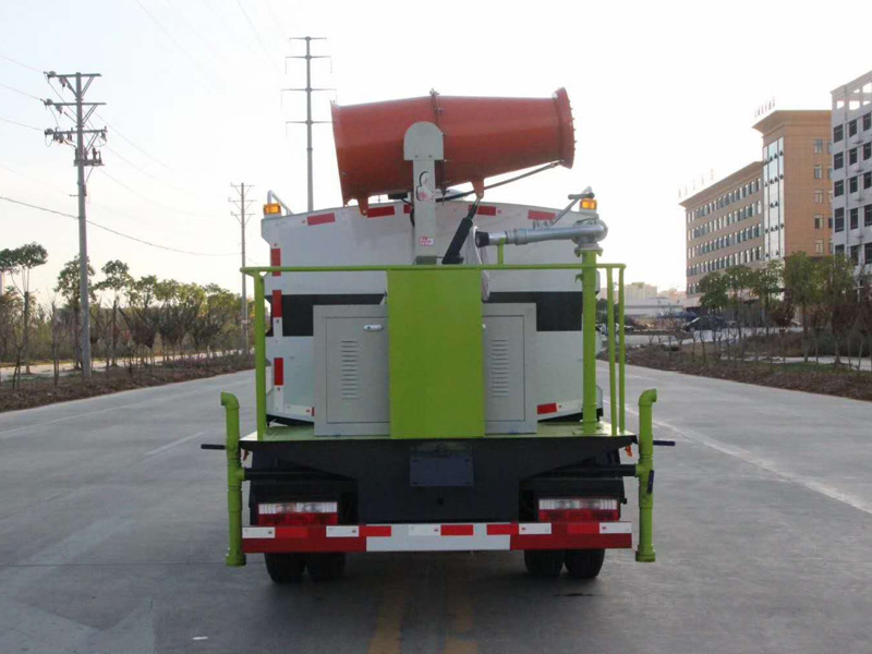 該車具有前沖、后灑、側(cè)噴(更換噴頭后變?yōu)閭?cè)花灑)、后置式工作平臺(帶踏梯,四周有安全護(hù)欄)、平臺上設(shè)置有高壓水炮(可360°旋轉(zhuǎn),旋轉(zhuǎn)炮頭可調(diào)整水流形態(tài),可連續(xù)調(diào)成:直沖狀、開花狀、大中小雨