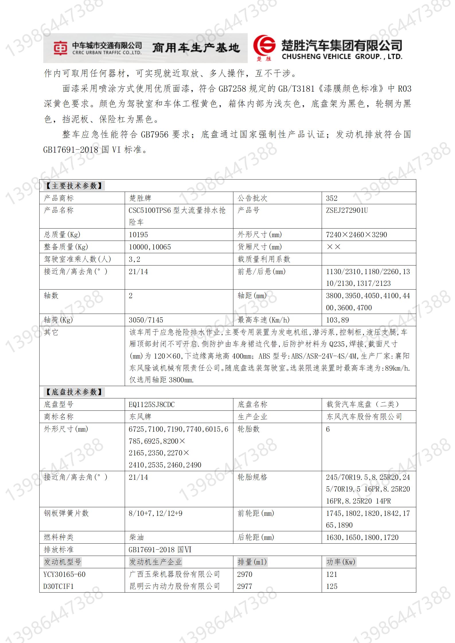 楚勝汽車集團(tuán)有限公司主要生產(chǎn)各類救險車、電源車、消防車、移動照明車,市政環(huán)衛(wèi)車系列:灑水車、垃圾車(勾臂/擺臂/掛桶/壓縮/對接/密封自卸/餐廚垃圾車等)、吸糞吸污車、高壓清洗車、道路清掃車(掃路車/洗掃車/吸塵車等);罐式車系列:油罐車/流動加油車、化工液體運輸車、粉粒物料運輸車等;工程車系列:自卸車、隨車吊、高空作業(yè)車、平板運輸車、混凝土攪拌車、清障車;半掛車系列:半掛油車、半掛化工罐車、集裝廂運輸半掛車、低平板半掛車等、全掛車系列六大類,130多個品種,年生產(chǎn)能力達(dá)萬余輛。