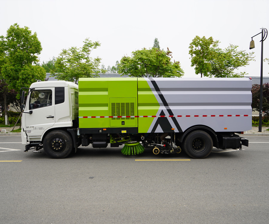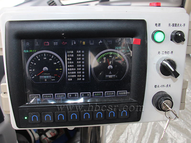 3)采用智能化一鍵控 制技術(shù),全部作業(yè)均在駕駛室內(nèi)完成,作業(yè)時(shí),只需選定作業(yè)模式后,各作業(yè)機(jī)構(gòu)的啟動(dòng)與關(guān)停由程序自動(dòng)**。具有全洗掃作業(yè)、左洗掃作業(yè)、右洗掃作業(yè)、全掃路作業(yè)、左掃路作業(yè)、右掃路作業(yè)、全吸作業(yè)、左洗作業(yè)和右洗作業(yè)等9種作業(yè)模式可選。